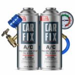 Dwie (2) szt. CarFix 5w1 Repair R134a – zamiennik R134a – to rewolucyjny preparat o kompleksowym działaniu, przeznaczony do samodzielnego (DIY) przeprowadzenia całościowego serwisu klimatyzacji, w niecałe 5 minut, bez konieczności wizyty w specjalistycznym zakładzie, bez użycia specjalistycznych narzędzi serwisowych i bez wytwarzania próżni 23 hPa.